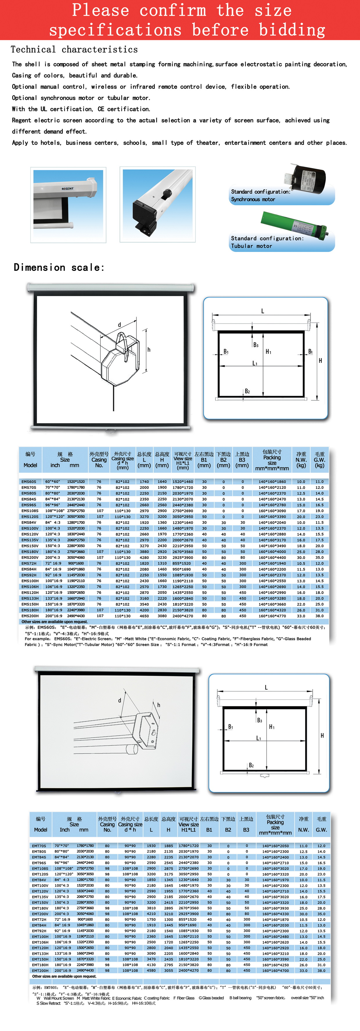 ■ We also provide “Motor In Roller” model which is suitable for large size screens and quite “Synchronous Motor” for small to medium size screens.